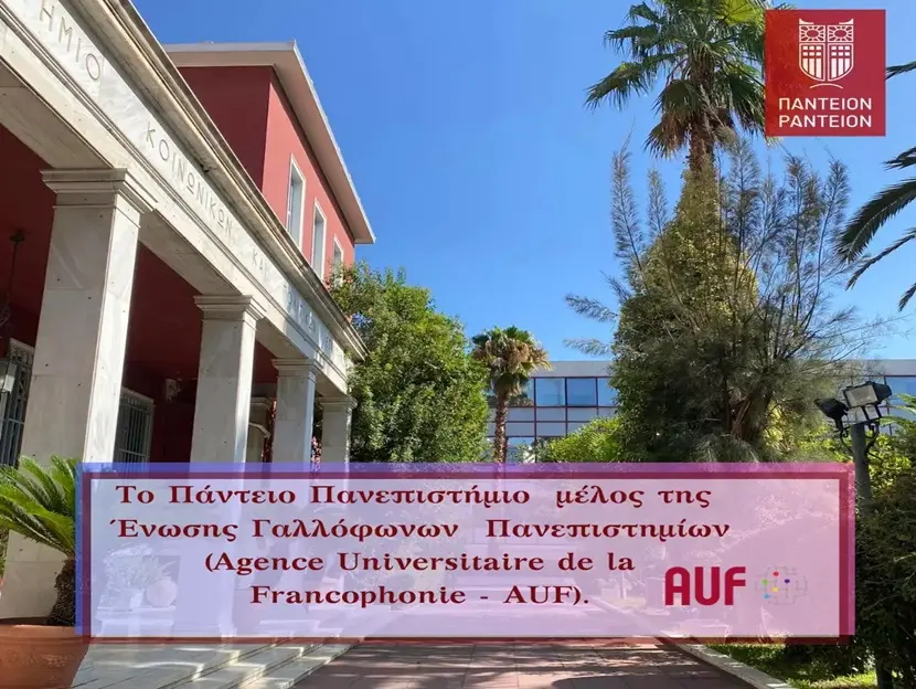 Από το Νοέβριο του 2023, το Πάντειον Πανεπιστήμιο Κοινωνικών και Πολιτικών Επιστημών αποτελεί μέλος του δικτού της Ένωσης Γαλλόφωνων Πανεπιστημίων (Agence Universitaire de la Francophonie – AUF). Ως μέλος της AUF, το αποκτά πρόσβαση σε ένα εκτεταμένο δίκτυο γαλλόφωνων ιδρυμάτων, το οποίο ανοίγει ευκαιρίες για συνεργατική έρευνα, κοινά ακαδημαϊκά προγράμματα σπουδών και δράσεις ανταλλαγής φοιτητών. Η ένωση παρέχει πόρους και υποστήριξη για την ανάπτυξη εκπαιδευτικών προγραμμάτων, συμπεριλαμβανομένης της πρόσβασης σε επιχορηγήσεις για έργα που σχετίζονται με την τριτοβάθμια εκπαίδευση.