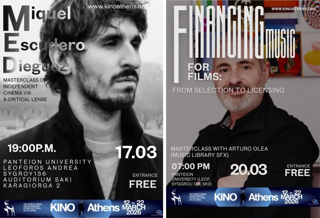 Το Εργαστήριο Πολιτιστικής Διαχείρισης του Τμήματος Επικοινωνίας, Μέσων και Πολιτισμού, σε συνεργασία με το Φεστιβάλ Ανεξάρτητου κινηματογράφου της Αθήνας KINO ATHENS 2026 oργανώνουν στο Πάντειο δύο master classes, από καταξιωμένους επαγγελματίες του χώρου: