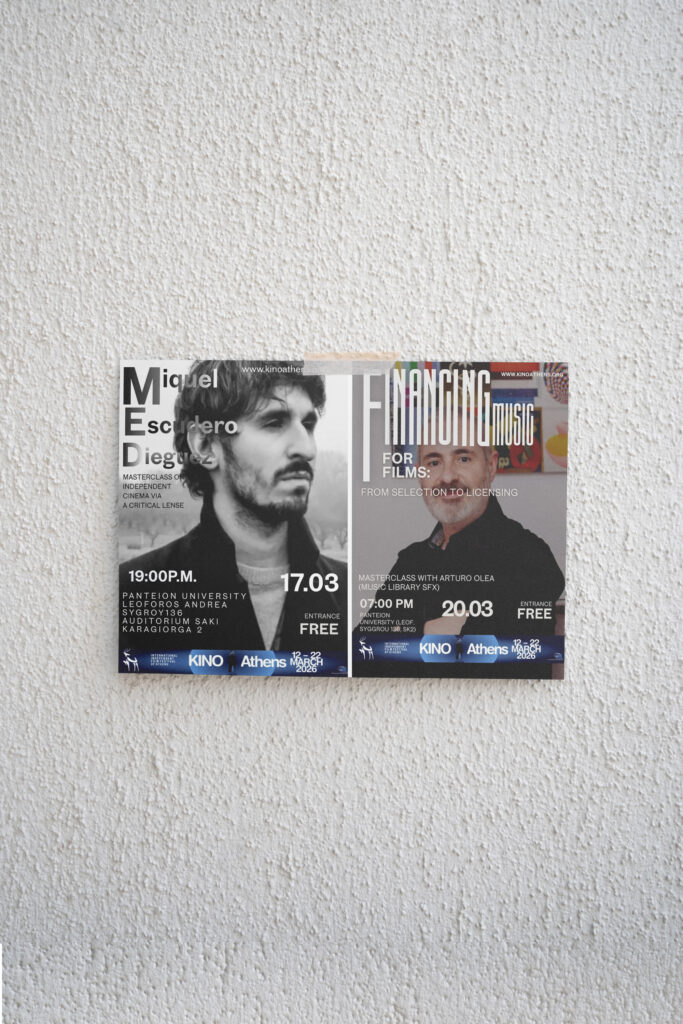 «Aνεξάρτητος Κινηματογράφος Μέσα από τον Κριτικό Φακό», την Τρίτη 17/3 στις 7 μ.μ., από τον curator Μικέλ Εσκουδέρο και «Χρηματοδότηση Μουσικής για Ταινίες: Από την Επιλογή έως την Άδεια Χρήσης», την Παρασκευή 20/3 στις 7 μ.μ., από τον Αρτούρο Ολέα, Music Library SFX.