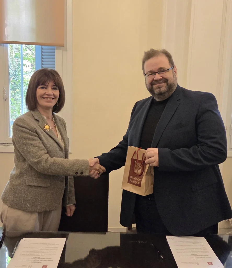 Μνημόνιο συνεργασίας μεταξύ του Παντείου Πανεπιστημίου Κοινωνικών και Πολιτικών Επιστημών και της Κυπριακής Ακαδημίας Επιστημών, Γραμμάτων και Τεχνών, υπεγράφη τη Δευτέρα 2 Φεβρουαρίου 2026, από την Πρύτανι του Παντείου Πανεπιστημίου, Καθηγήτρια Χριστίνα Κουλούρη και τον Πρόεδρο της Ακαδημίας, Καθηγητή Αχιλλέα Κ. Αιμιλιανίδη, με σκοπό την προώθηση της έρευνας, της εκπαίδευσης και της επιστημονικής αριστείας. Στην τελετή υπογραφής συμμετείχε η Πρόεδρος του Τμήματος Δημόσιας Διοίκησης, Αναπλ. Καθηγήτρια Φερενίκη Παναγοπούλου.